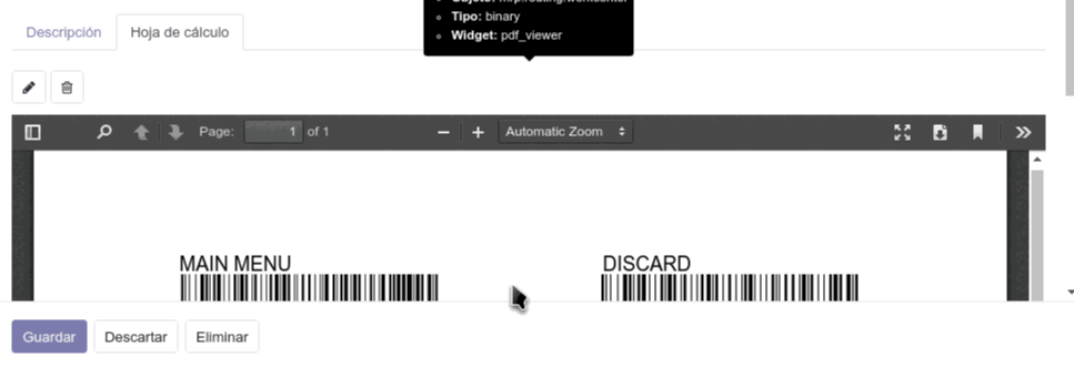 Permite visualizar un documento PDF dentro de Odoo