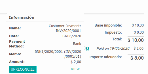 Este widget muestra información detallada de los pagos que se han efectuado asociados a una factura.
