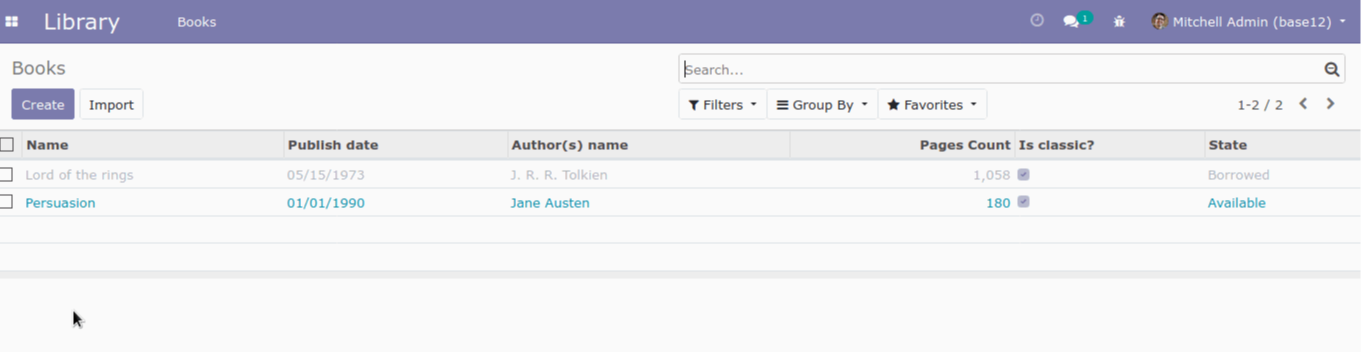Al presionar sobre el filtro Borrowed, automáticamente se mostrarán sólo aquellos libros que están en estado Borrowed, pues el filtro se aplica sobre el valor del campo state.